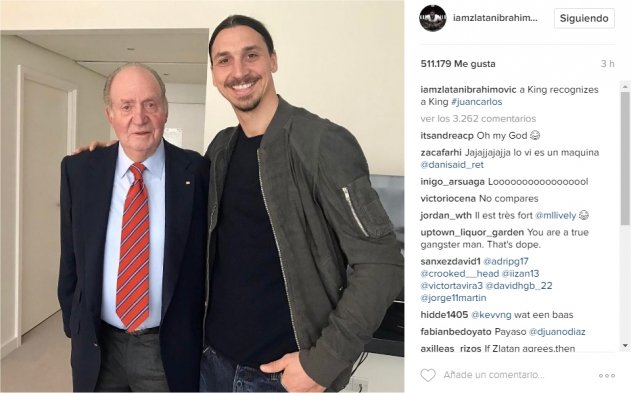 "Un rey conoce a otro rey". El sueco Zlatan Ibrahimovic publicó en Instagram una fotografía junto al Rey de España, Juan Carlos.