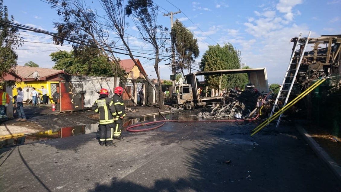 "Justamente iba pasando un camión tres cuartos y producto de ello el camión de mayor envergadura lo impacta, lo que finalmente genera que ambos vehículos se incendien y se incendie el cierre perimetral de un inmueble", añadió el oficial.