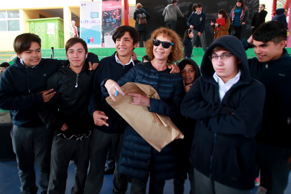 La actriz Claudia Di Girolamo realizó una clase guiada para alumnos de la Escuela Básica Finlandia en Pudahuel, donde tuvo a más de 80 estudiantes participando de ejercicios teatrales en torno a su identidad, los que buscaron potenciar sus habilidades socioemocionales.