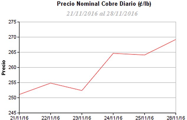 En la misma línea, en su informe semanal la Corporación Chilena del Cobre (Cochilco) indicaba que al "efecto Trump" de inicios de mes se habían sumado las expectativas sobre una mayor demanda de China y menores proyecciones de crecimiento de la oferta para 2017.