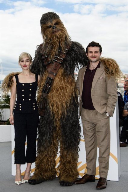 Chewbacca, junto al elenco de la película "Solo: A Star Wars Story" y su director, Ron Howard, posaron ante las cámaras en el Festival de Cine de Cannes donde se presentará la película.