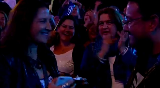 | #AnaTorroja hace un alto en su presentación y los animadores entran en escena. De inmediato suena la fanfarria