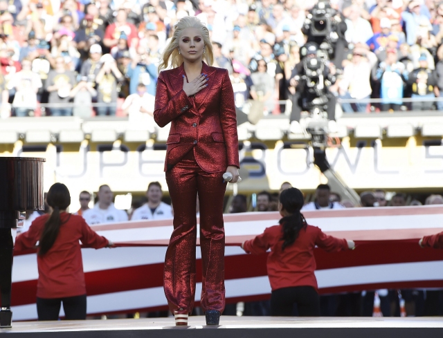 Antes del partido, la interpretación del himno nacional estuvo en manos de la cantante Lady Gaga, quien recibió muy buenas críticas en medios y en las redes sociales.
