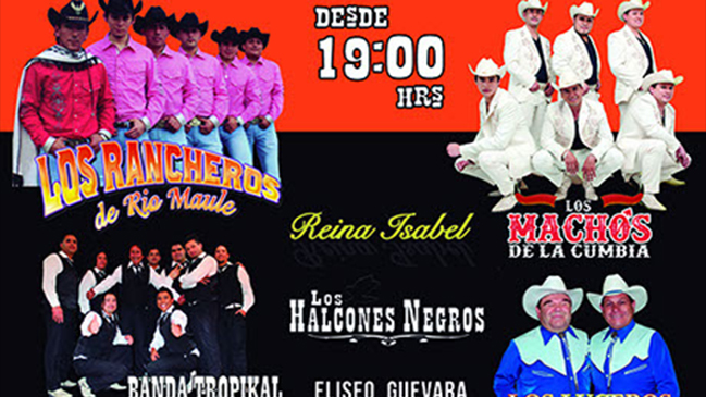Artistas como Los Rancheros del Río Maule, Los Machos de la Cumbia, Reina Isabel, Los Luceros del Valle, Eliseo Guevara, Banda Tropikal de Vallenar y Los Halcones Negros, participarán de esta velada.