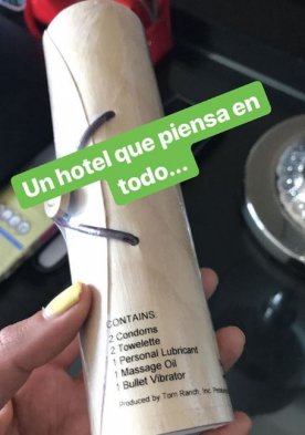 La actriz Dayana Amigo se encuentra en Las Vegas de vacaciones y en su cuenta de Instagram compartió el detalle que se encontró en un hotel. Se trataba de un paquete con dos condones, lubricante, aceite de masaje y un vibrador.