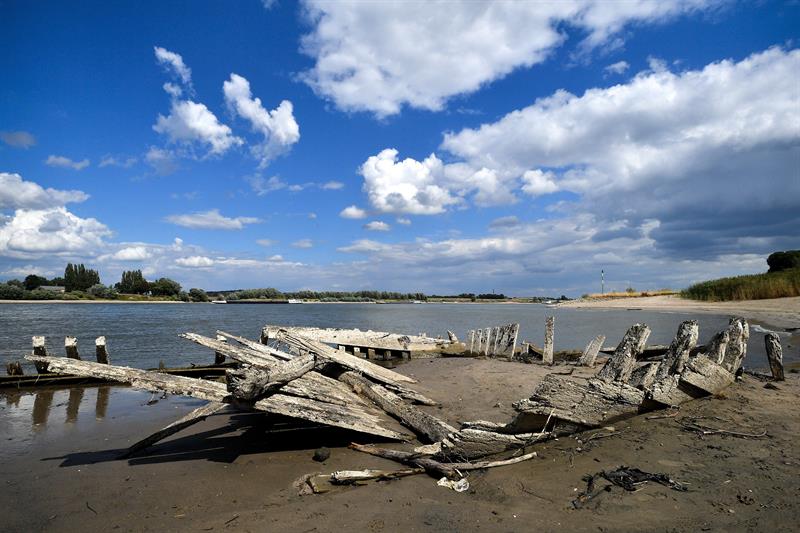 Los restos de un buque de carga llamado "De Hoop", de hace 123 años, apareció en la orilla del río Rin, cerca de Emmerich, en Alemania. La embarcación se hundió en 1895 tras una explosión, donde presuntamente 16 personas perdieron la vida, según el archivo de la ciudad de Kleve.