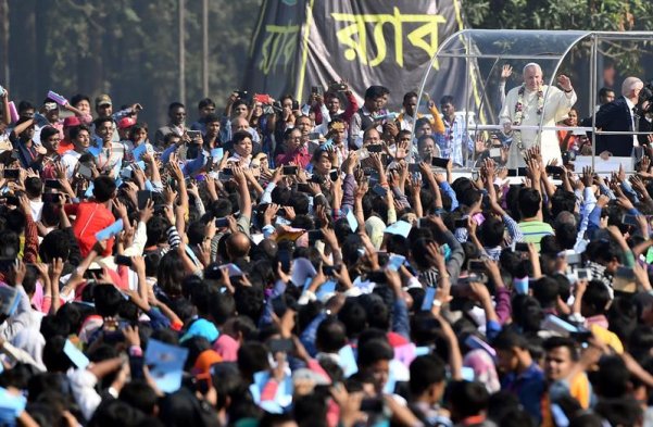 El papa Francisco saludó a sus fieles en su llegada para celebrar misa y una ordenación presbiteral. El máximo representante de la Santa Sede llegó a Bangladesh justo cuando se esta produciendo la llegada de miles de ciudadanos rohingyás, que se movieron forzosamente desde Birmania.