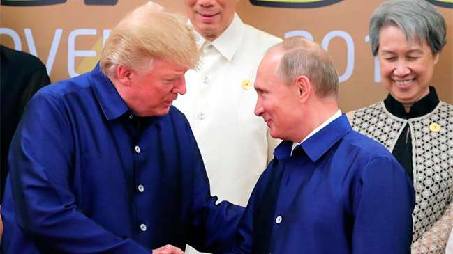 Los presidentes de Rusia, Vladímir Putin, y de Estados Unidos, Donald Trump, se dieron hoy la mano e intercambiaron unas palabras en la cumbre del Foro de Cooperación Económica Asia-Pacífico (APEC) en Danang, en Vietnam.
