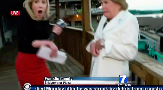 En las imágenes se ve a Parker llevando a cabo una entrevista cuando se escuchan unos disparos, la cámara cae al suelo y sigue rodando mientras se escuchan más gritos hasta que se interrumpe la transmisión, que pasa a sus colegas del estudio, que parecen no saber cómo reaccionar en el momento.
