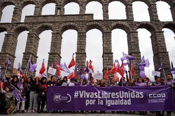 Millones de mujeres se dan cita en toda España en la primera huelga general feminista que se desarrolla en el país, en el marco del Día Internacional de la Mujer. Las concentraciones de mujeres recorren todo el país bajo el lema "Si nosotras paramos, se para el mundo", siendo las de Bilbao, Pamplona, Barcelona, Sevilla y Madrid las más numerosas.