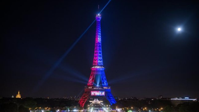 Anoche la Torre Eiffel estaba iluminada de forma extraordinaria con los colores del club de fútbol Paris Saint-Germain (PSG).