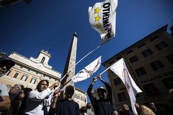 Simpatizantes del Movimiento 5 Estrellas se manifestaron este miércoles luego que el Gobierno italiano decidiera someter a una moción de confianza al proyecto que crea una nueva ley electoral.