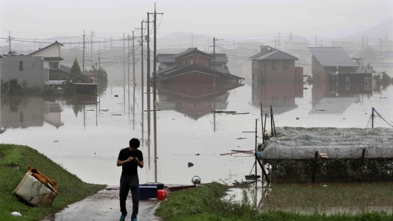 Efectivos de las Fuerzas de Autodefensa (Ejército), la policía y los bomberos continúan hoy con las operaciones de rescate de personas refugiadas en azoteas y techos de edificios que resultaron inundados, al tiempo que prosigue la búsqueda de 58 desaparecidos, según informó la cadena estatal NHK.