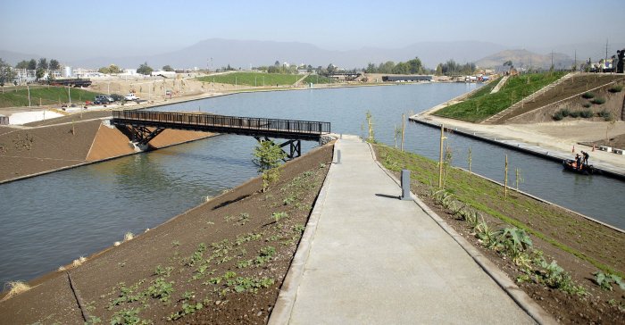 Tras realizar un recorrido por las obras del recinto y navegar por sus aguas en un bote zodiac, el Presidente Sebastián Piñera encabezó la puesta en marcha de las obras hidráulicas del Parque Renato Poblete, que permite convertirlo en el primer parque fluvial de la ciudad de Santiago.