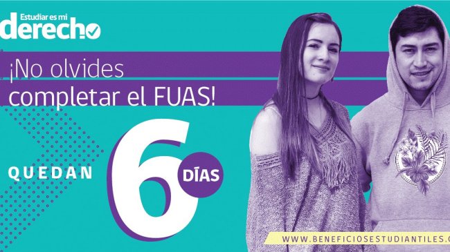 ¡Ojo, pestaña, ceja! Quedan sólo 6 días para completar el FUAS para #BeneficiosEstudiantiles y #Gratuidad ¡Avísale a tus amigas, amigos, vecinos, familiares, a todos! https://t.co/lpxZ51OXKN pic.twitter.com/tiV6JBiYZQ