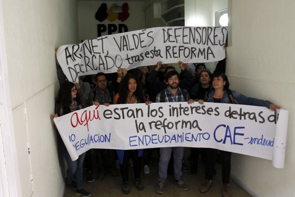 Estudiantes de la Confech y de la Universidad Alberto Hurtado se tomaron la sede del PPD mientras se llevaba a cabo una reunión entre la directiva de este partido y el Partido Socialista.