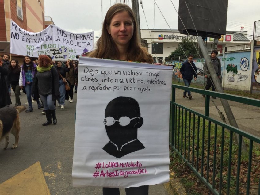 Cerca de 300 estudiantes de la Universidad Austral de Chile marcharon este miércoles por las calles del centro de Valdivia, plegándose a la movilización nacional convocada por la Confech que exigía educación no sexista y visibilizar los casos de acoso sexual en las universidades. La manifestación culminó sin incidentes, salvo la detención -por algunos minutos- del tránsito en el Puente Pedro de Valdivia, lo que generó congestión vehicular.