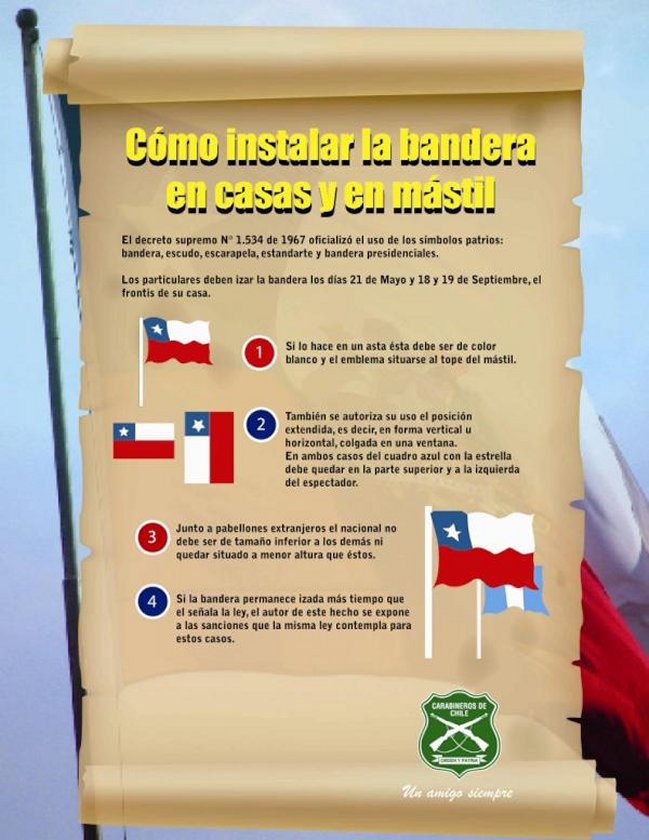 Tal como establece la ley, durante este 18 y 19 de septiembre es obligatoria la instalación de la bandera nacional en el frontis de las casas en todo el país.