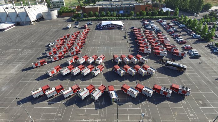 En Espacio Riesco se entregaron los nuevos 73 carros con que cuentan mismo número de compañías de bomberos del todo el país, correspondientes a 29 unidades C-4 semi urbano 4x2, 16 C-4 semi urbano 4x4 y 28 C-5 forestal 4x4. Las compañías no debieron desembolsar dineros, por que de los 10.500 millones de inversión el Estado 8.393 millones y Bomberos de Chile -como organización nacional- los restantes2.095.