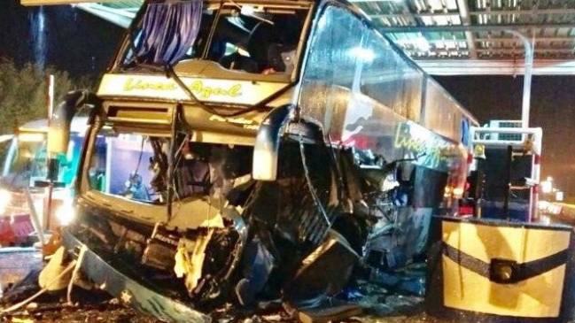 Alrededor de las 03:00 de la mañana, un bus Linea Azul, que viajaba desde Futrono (Región de Los Ríos) hacia Santiago, impactó una garita vacía de peaje en el kilómetro 444,6 de la Ruta 5 Sur.