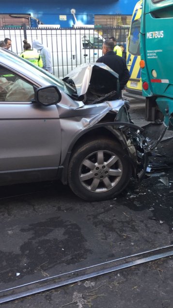 Con serios daños en su parte delantera quedó un vehículo que la tarde de este miércoles impactó por alcance a una micro del recorrido 508 del Transantiago. El accidente ocurrió en la intersección de las calles Catedral y Esperanza, en el Barrio Yungay, y motivó la concurrencia del SAMU. El conductor de la máquina fue trasladado a la mutual de seguridad y el del vehículo marca Honda a la Posta 4, fuera de riesgo vital. Los pasajeros del bus no sufrieron lesiones.