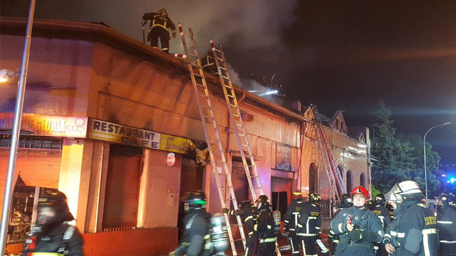 Un incendio originado alrededor de las 02:00 horas de este domingo consumió por completo cuatro locales de comida rápida, entre ellos, la tradicional "Picá de Gloria", en pleno Barrio Yungay, en Santiago.