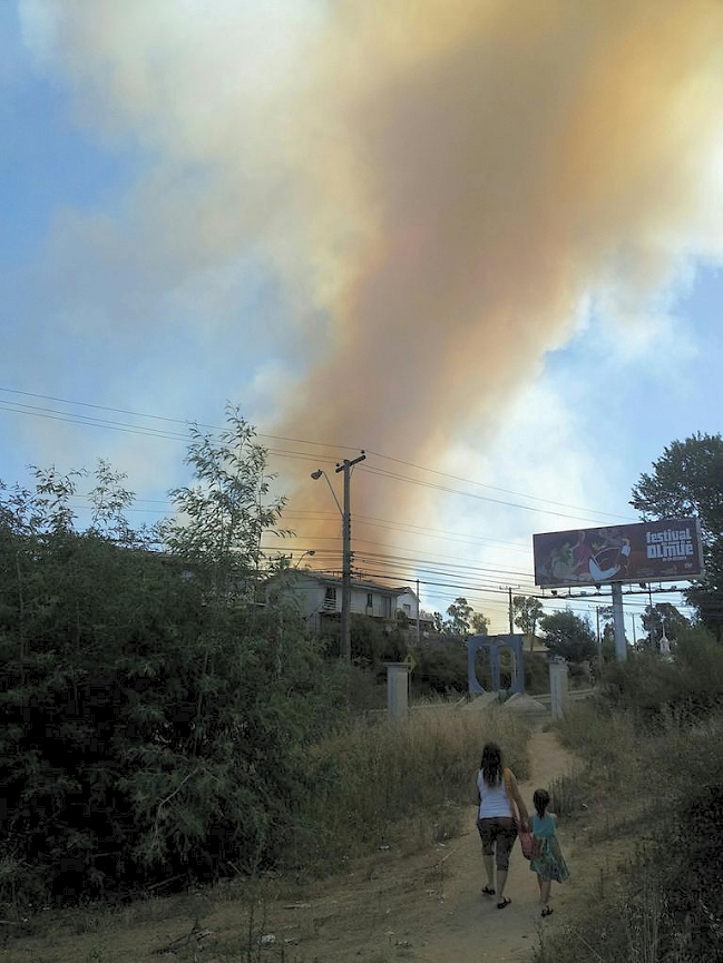 Un gran columna de humo es visible desde Viña del Mar, ciudad que ya ha sido afectada en esta época estival por unos 20 incendios forestales.