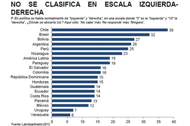 Los chilenos son los que menos se clasifican bajo el esquema "izquierda-derecha" en política.