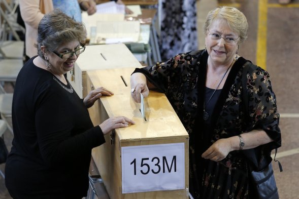 La Presidenta Michelle Bachelet votó en medio de numerosos gestos de apoyo de electores que se encontraban en el Colegio Teresiano Enrique de Ossó, en la comuna La Reina.