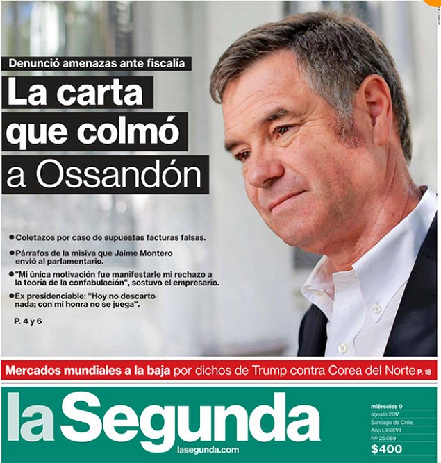 A continuación reproducimos textuales varios párrafos de la carta que le mandó Jaime Montero Jaramillo a Manuel José Ossandón el 1 de julio, extractados tanto de El Mostrador como de La Segunda.