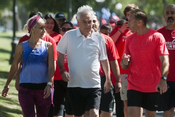Piñera deportista: Se subió a la bici, trotó e intentó elongar