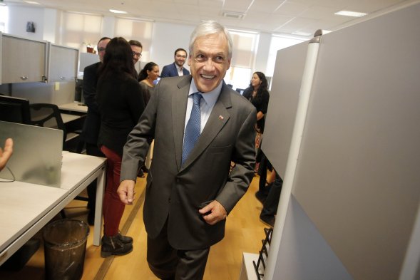 El Presidente Sebastián Piñera salió del Palacio de La Moneda y recorrió la Plaza de la Constitución y el Edificio Bicentenario para saludar a empleados y transeúntes que recorrían el sector.