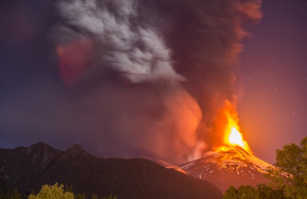 Acompañado de un gran estruendo, a eso de las 03:00 horas de este martes hizo erupción el Volcán Villarrica provocando la evacuación voluntaria de Pucón. Estas imágenes corresponden al momento en que el macizo expulsó lava.