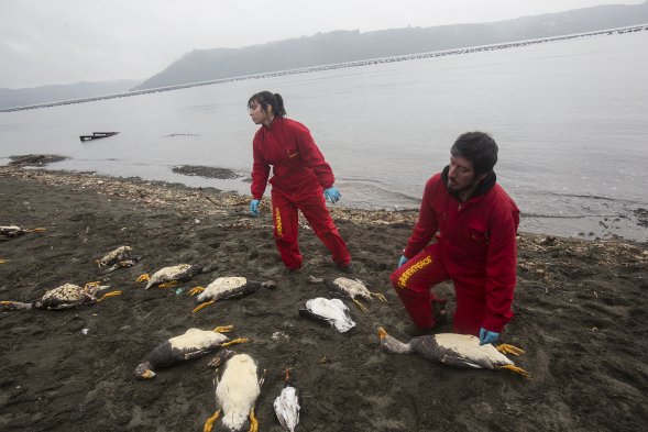 Tras visitar Chiloé, Greenpeace difundió estas imágenes para denunciar que en la isla hay "una de las crisis ambientales más grandes del último tiempo" en Chile y aseguraron que ésta ha "generado una mortandad de especies marinas inédita para las costas chilenas".