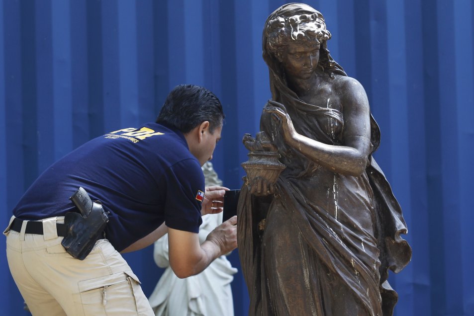 La Brigada Investigadora de Delitos contra el Medioambiente y Patrimonio Cultural de la PDI entregó detalles de las 49 estatuas incautadas ayer de la hacienda del empresario Raúl Schüler en San Francisco de Mostazal.