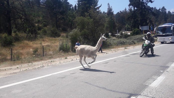 Varios minutos estuvo detenido el tránsito en la ruta 68 en dirección Valparaíso, cuando una llama se atravesó en el camino. Carabineros tuvo que espantarla para poder restablecer el tránsito.
