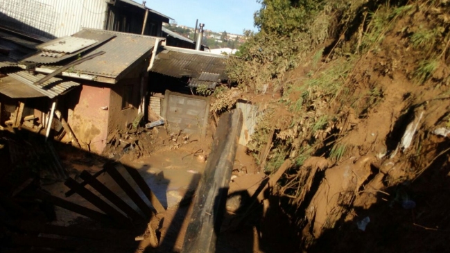 Dos casas resultaron destruidas este viernes luego que se registrara un deslizamiento de tierra en un cerro en la comuna de Lota, tras el sistema frontal en la Región del Biobío.