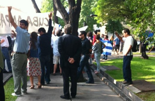 | Los manifestantes de la UDI frente a la embajada de Cuba (Foto: @ad_gomez_fortin)