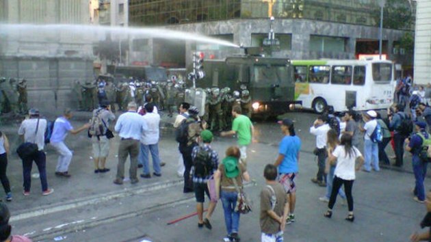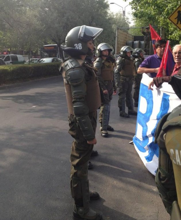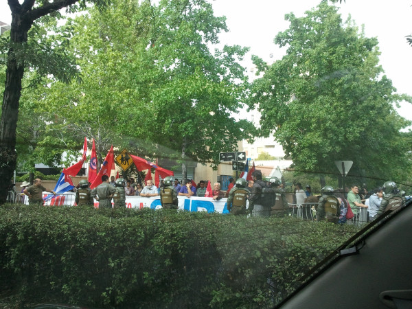 | Efectivos de Fuerzas Especiales de Carabineros separan a manifestantes de la UDI de partidarios del gobierno cubano