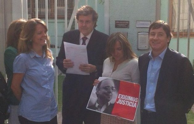 | Melero acudió ante la embajada acompañado por la senadora Ena von Baer y los diputados Cristián Letelier y Felipe Salaberry.