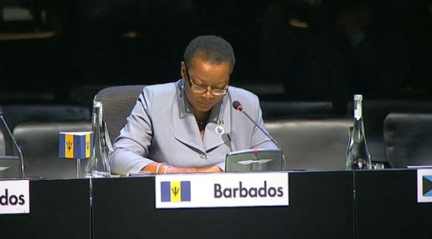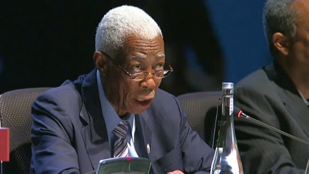 | Piñera dio la palabra al ministro de Relaciones Exteriores de Jamaica, Arnold Joseph Nicholson.