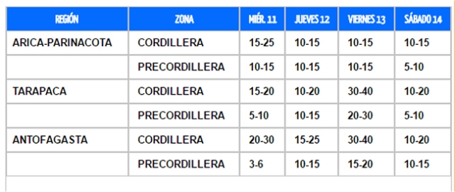 La Onemi decretó alerta amarilla en regiones de Arica y Parinacota y de Tarapacá por lluvia en precordillera y cordillera.
