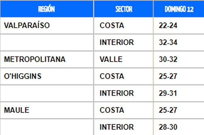 Se esperan máximas sobre los 32 grados al interior de las regiones de Valparaíso, Santiago O'higgins y el Maule por una ola de calor.