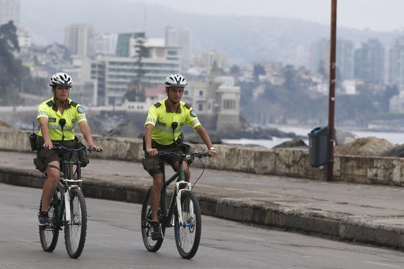 La Policía Marítima resguarda la Avenida Perú de Viña Del Mar, la cual se encuentra cerrada para peatones y vehículos debido a una nueva alerta de Marejadas para el borde costero.