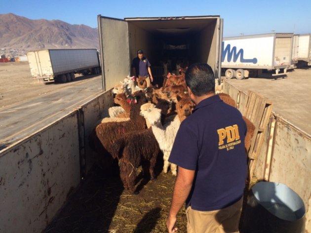 20150328143408 | [FOTO] PDI rescata a 75 llamas atrapadas en un camión