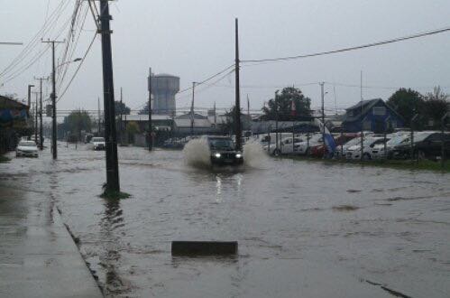 También se registró la inundación de calles y colapso de colectores de aguas lluvias en varios sectores de Valdivia. A causa de ello, un micro bus rural quedó atrapado en el agua en la esquina de avenidas Simpson con Ecuador. Los pasajeros fueron rescatados por personal de emergencias.