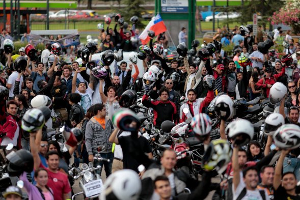 Motociclistas protestaron durante la tarde de este miércoles por la Alameda en rechazo a que se incluya a las motocicletas con y sin sello verde en la restricción permanente entre mayo y agosto prevista en el Plan de Descontaminación de la Región Metropolitana.