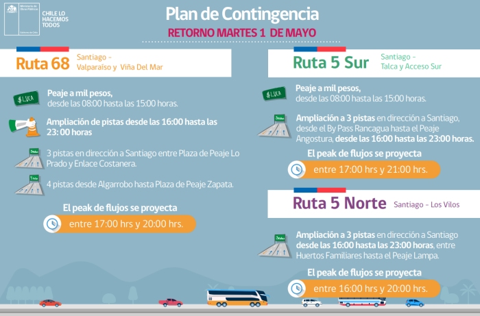 Para el retorno habrá peaje a luca y ampliación de pistas en dirección a Santiago.