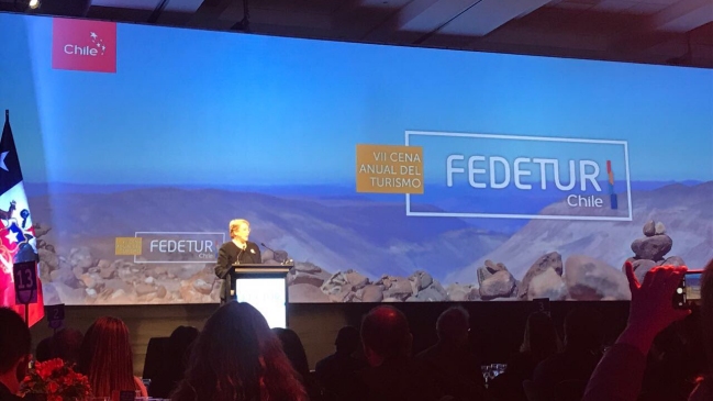 Ahora: Pdta. @mbachelet asiste a la Cena Anual del Turismo 2017, organizada por la Federación de Empresas de Turismo de Chile @FEDETUR_Chile pic.twitter.com/tcj3n35WfD