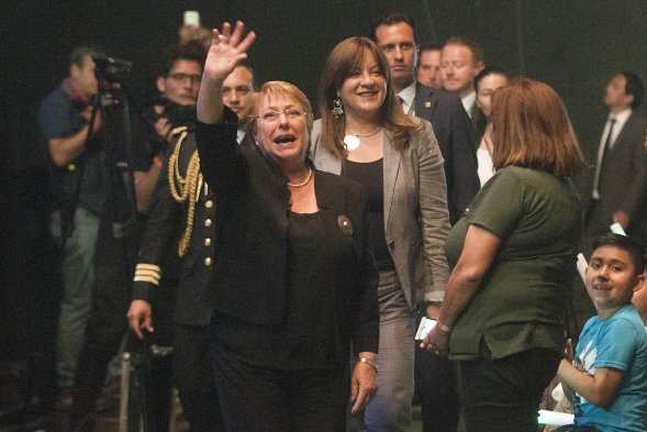 Hasta el Movistar Arena llegó este miércoles la Presidenta Michelle Bachelet quien encabezó la Fiesta de Navidad 2017 con un show del "Perro Chocolo", realizado para los niños de las instituciones de Integra, Sename, Fundación de las Familias, Junji, Prodemu y la Fundación de Orquestas.